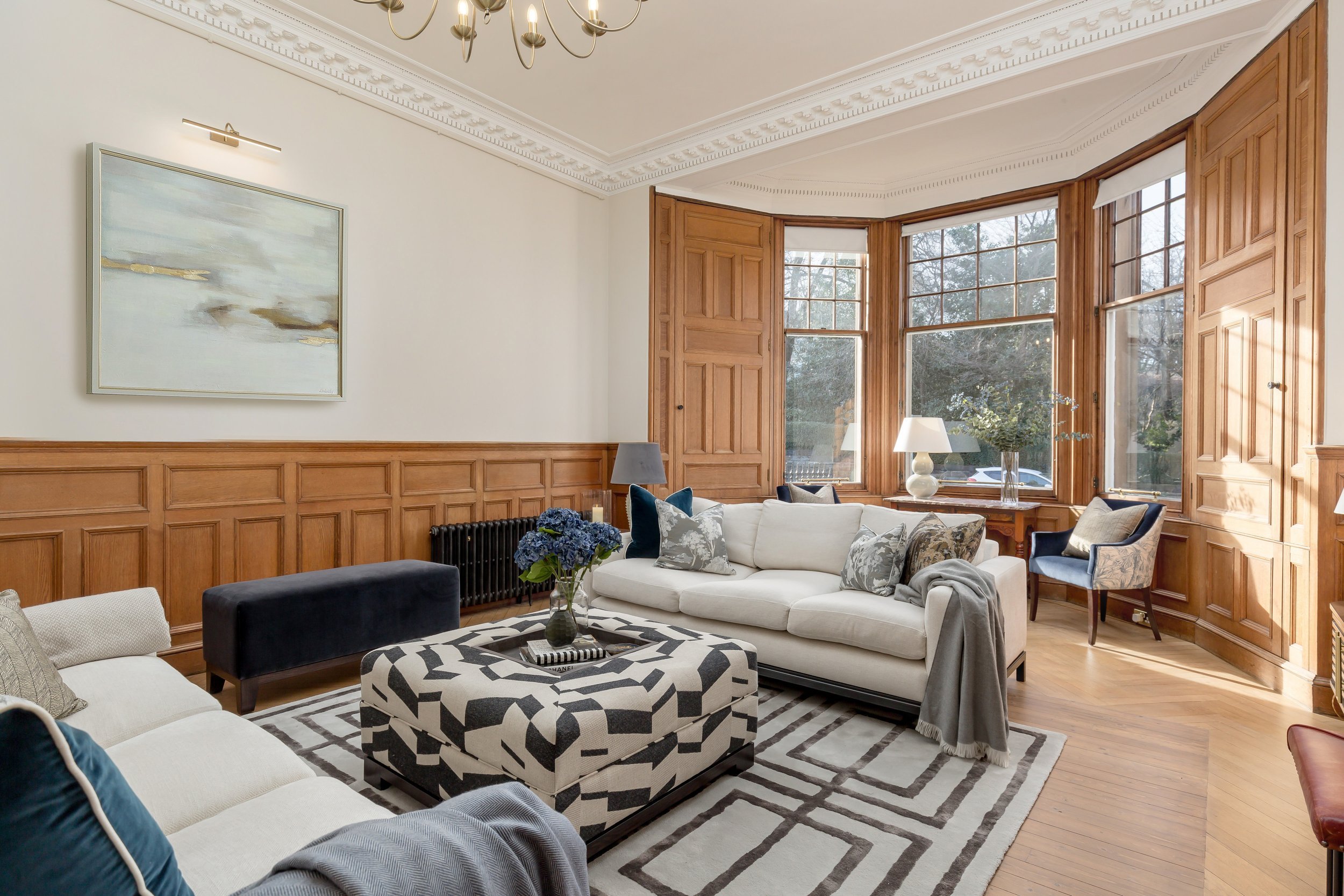 Elegant transformation of the sitting room and hallway in an Arts and Crafts Victorian Townhouse in the West End of Edinburgh.
