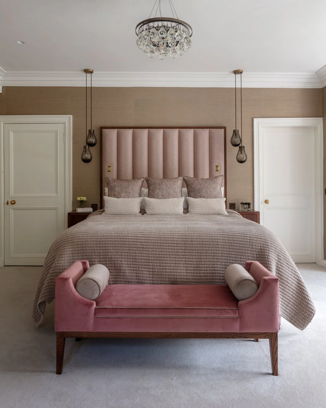 We recently completed the full renovation of a large 6 bedroom, 6 bathroom Arts and Crafts family home in Edinburgh which hadn’t been touched in years. This included an extensive refurbishment throughout incorporating a cinema room and a new extension. The extension boasts a spacious bespoke kitchen, pantry, bar area, boot room, and family sitting area with bespoke joinery and finishes. A palette of varying hues of blues, greens and pinks coupled with warm neutral tones creates a cohesive flow throughout. Involved from the start, we collaborated with builders and architects through to project completion and were delighted with the end result as were our clients.